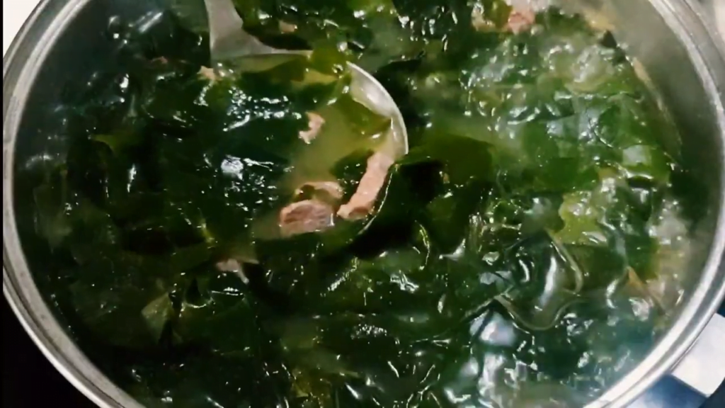 쌀뜨물로 미역국을 끓이면 구수함이 더해지며, 미역을 기름에 볶지 않아서 영양가가 드러나고, 담백하고 깔끔한 미역국이 완성됩니다.