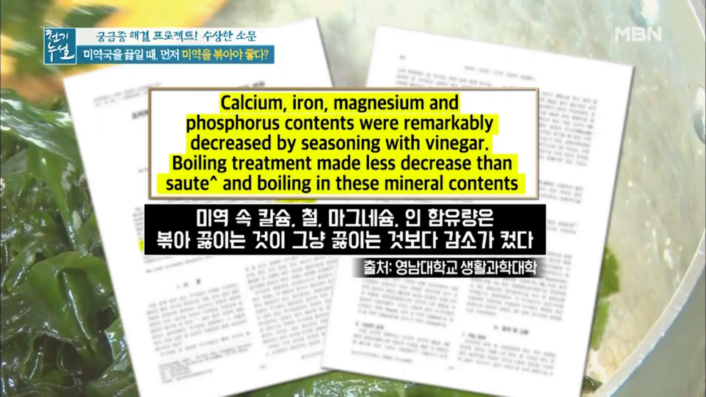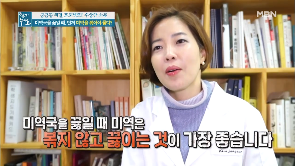 식품영양학 박사 김정은 교수는 미역을 볶지 않고 끓이는 것이 가장 좋다고 합니다.
