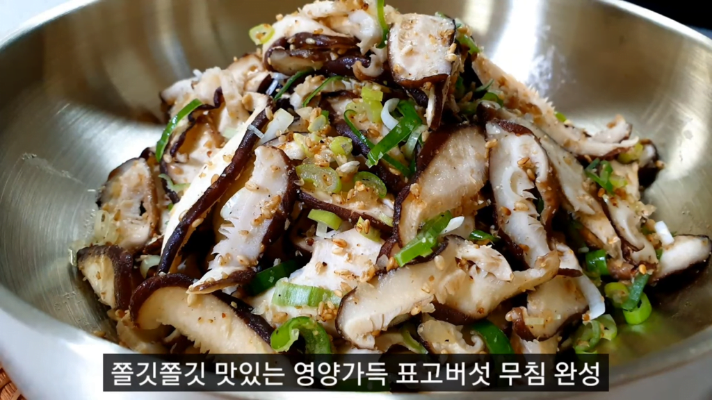 맛있게 먹을 수 있도록 버섯을 그릇에 담아줍니다. 이렇게 하면 표고버섯 무침이 완성됩니다.