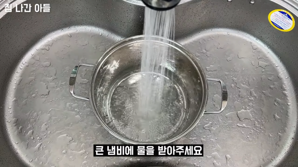 다음으로, 큰 냄비에 옥수수가 잠길 정도의 물을 받아줍니다.
