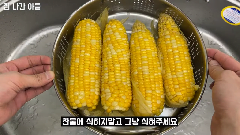 옥수수를 찬물에 식히지 말고, 자연스럽게 온도가 내려가도록 두는 것이 중요합니다.