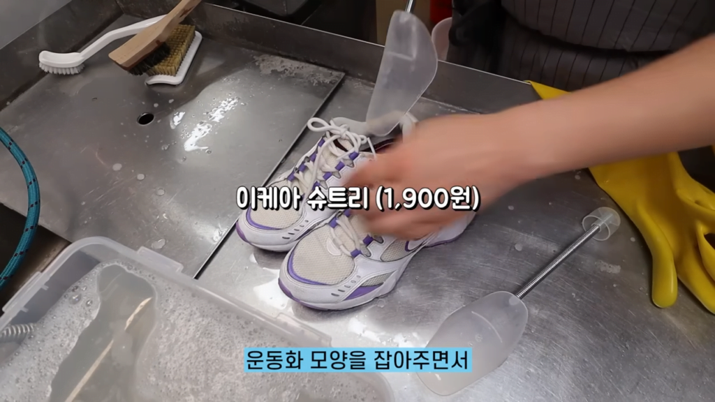 이 방법은 운동화를 세탁할 때 기본적인 자세입니다. 하지만 도구를 사용하면 더욱 편리하니 하나 구입해보세요.