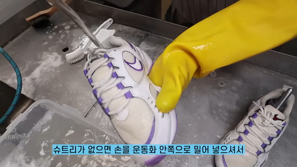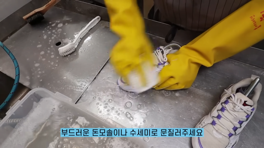 세제가 완전히 제거될 때까지 운동화를 꼼꼼히 헹구어야 합니다.