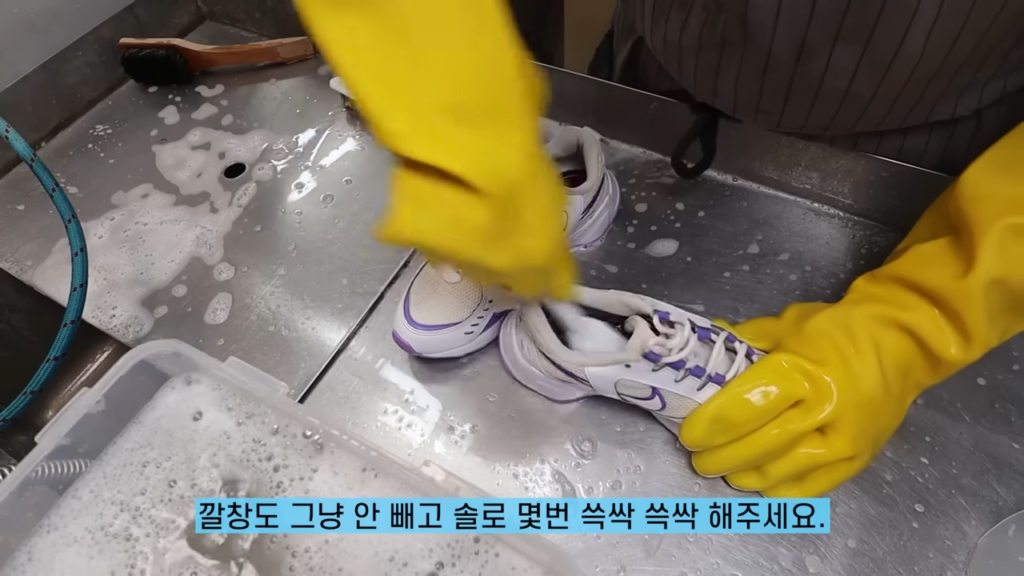 깔창도 빼지 않고 솔로 몇 번 닦아주세요.