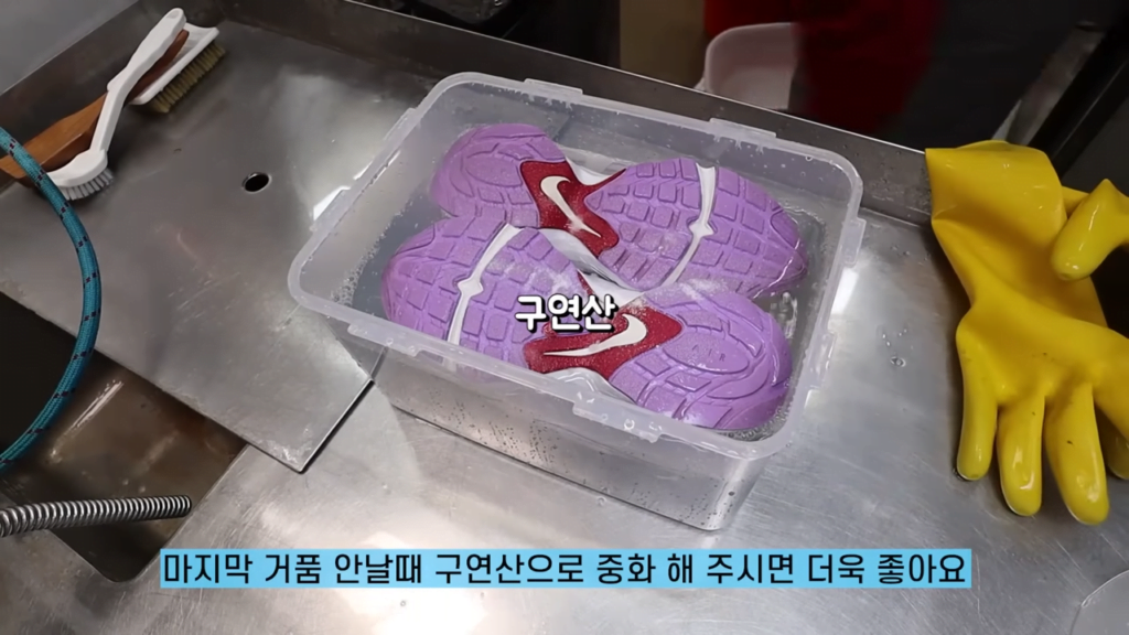 이 헹굼 과정을 가볍게 여기면 안되는 이유는 운동화가 빨리 망가지는 주된 원인이 이 부분에 있기 때문입니다.