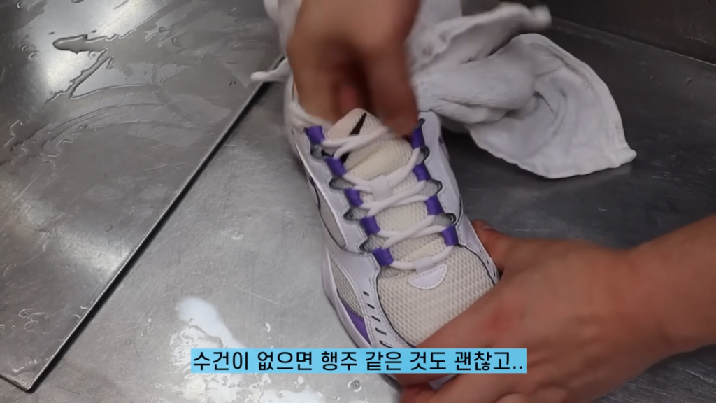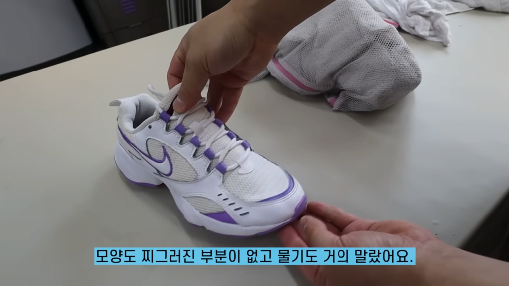헹굼이 끝나면 마른 수건으로 운동화의 물기를 반드시 제거해야 합니다.