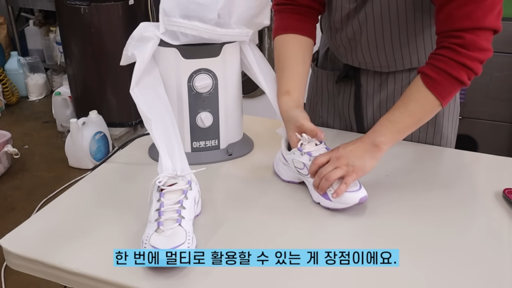 신발 안쪽을 말리는 방법에 대해 고민했는데, 인체 성형기를 활용한 아웃핏터를 사용하는 방법을 찾았습니다.
