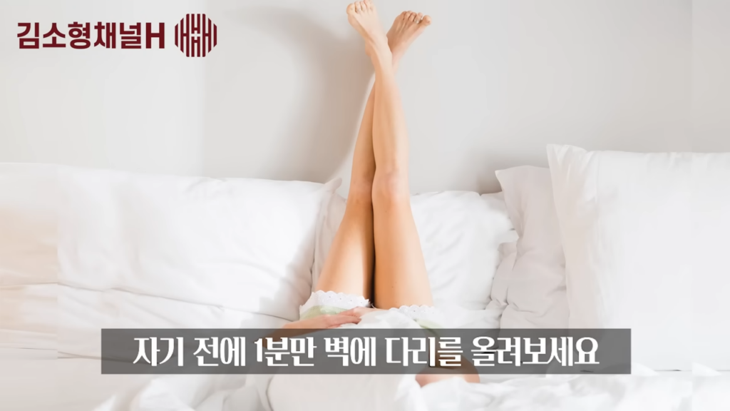 벽에 엉덩이를 붙이고 누운 상태에서 다리를 직각으로 들어올리는 운동도 효과적입니다.