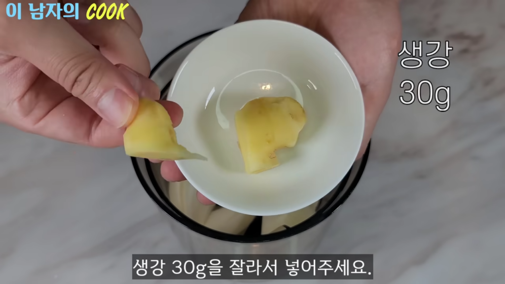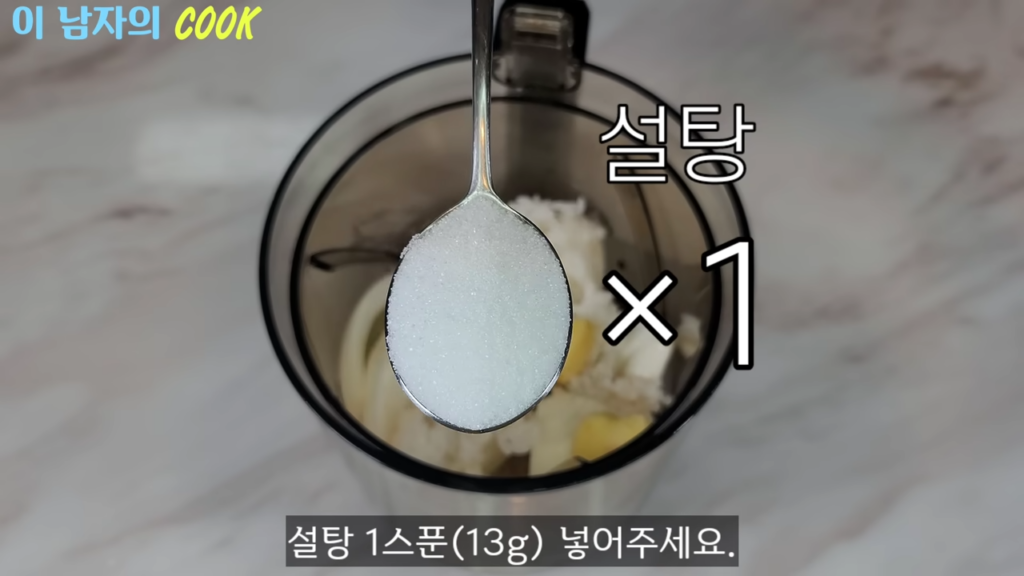 마지막으로 설탕 한 스푼을 넣고, 믹서기로 곱게 갈아주시면 됩니다.