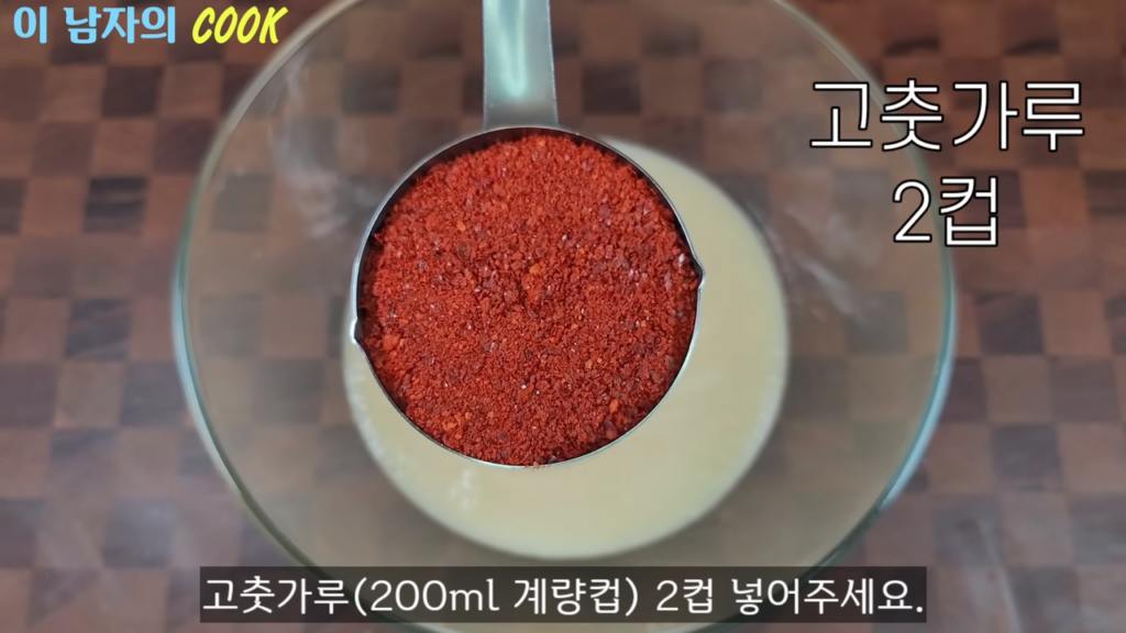 고추가루는 가급적 잘 간 것을 사용하시는 게 좋아요. 특히 김장할 때 쓰는 붉은 고추가루를 사용하시면 더 좋습니다.