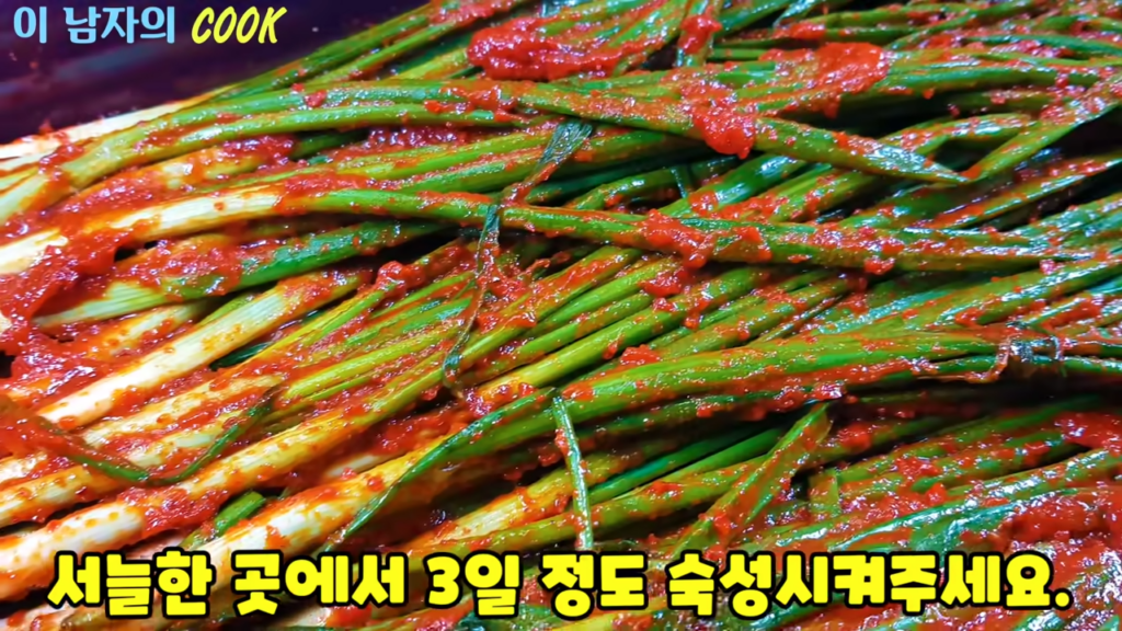이렇게 만들어진 파김치는 서늘한 곳에 3일 정도 숙성한 후에 맛을 보고 냉장고에 보관해주세요.