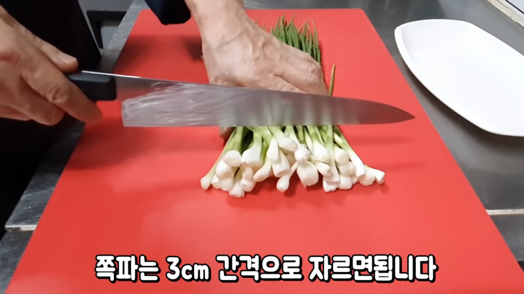 쪽파 머리가 너무 크다면 반으로 한 번 더 잘라줍니다.