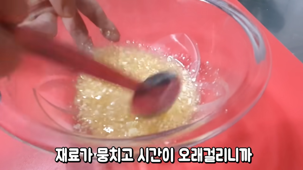 재료가 뭉치고 시간이 오래 걸리는 것을 방지하기 위해, 반드시 배합하여 만들어야 합니다.