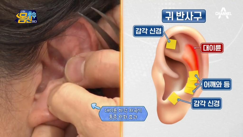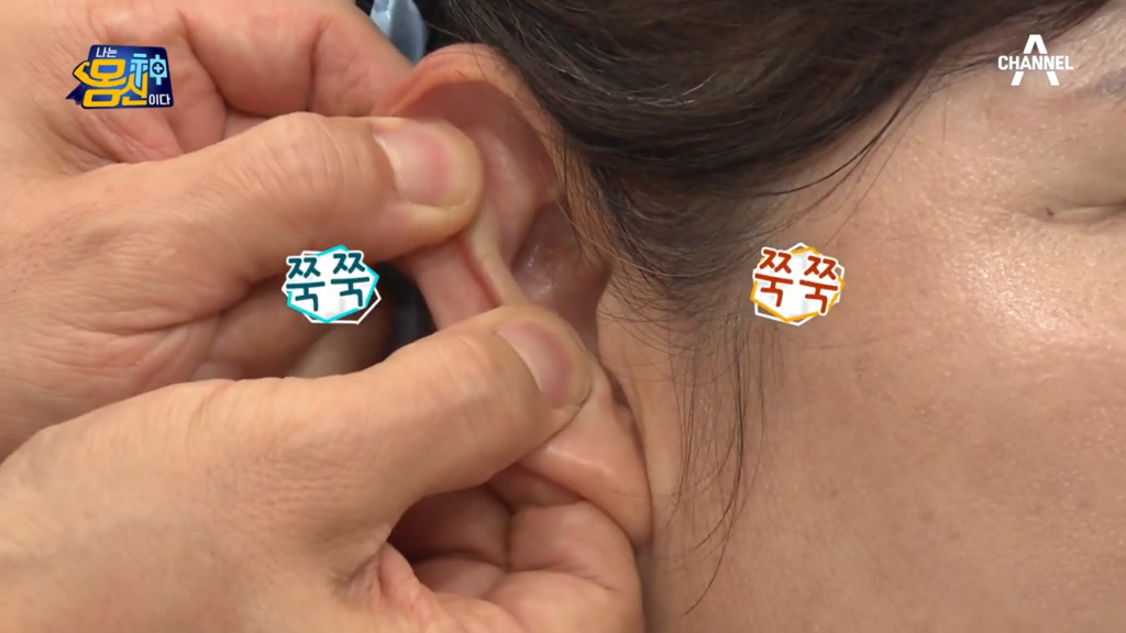 귀의 뒷부분을 지그시 누르거나 원을 그리며 마사지하면 어깨 통증을 완화하는 데 도움이 됩니다.