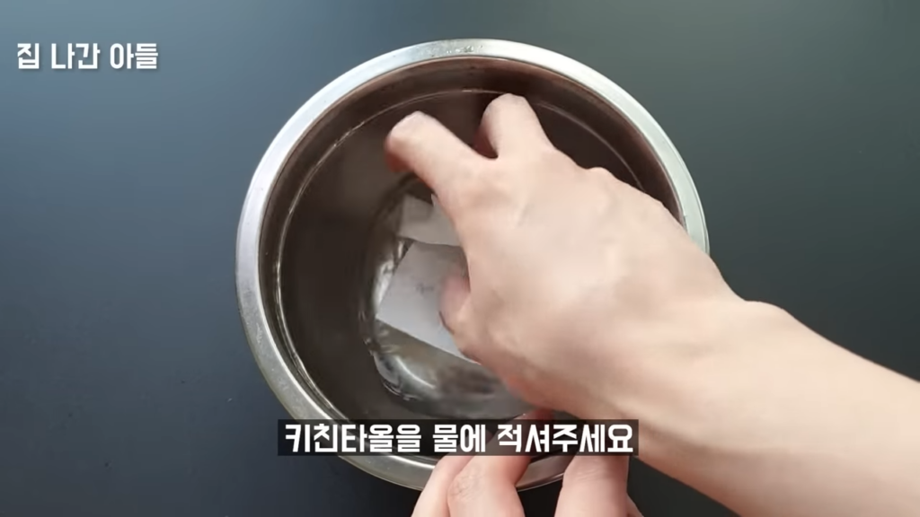 먼저 준비한 키친타올을 물에 살짝 적셔주세요.