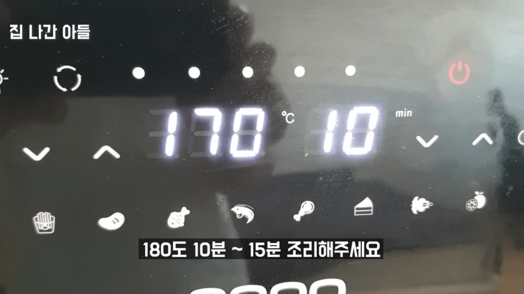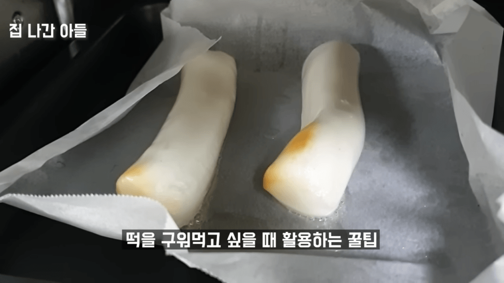 180도에서 약 10분에서 15분 동안 조리하세요. 이 방법은 떡을 구워서 먹을 때, 빠르게 해동하면서도 바삭하게 구워먹을 수 있는 좋은 방법입니다.