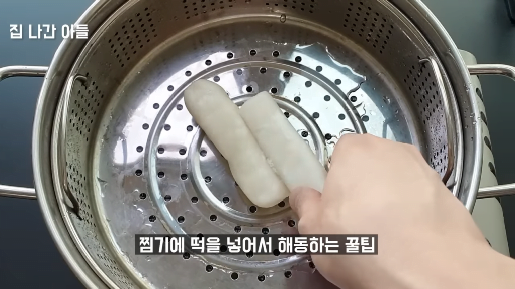 세 번째 꿀팁은 찜기를 사용하여 떡을 해동하는 방법입니다.