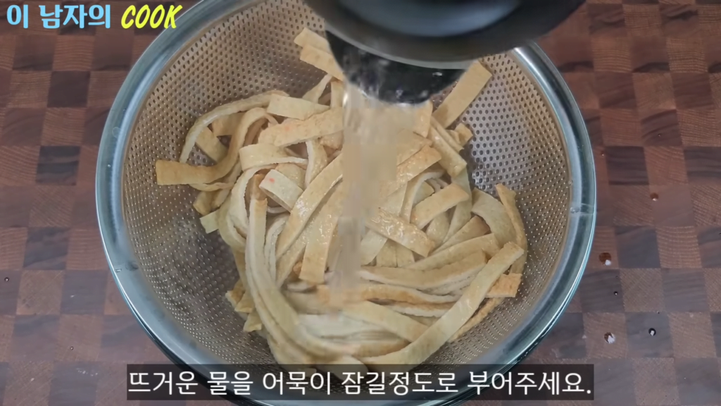 그리고 한 번 더 찬물을 부어서 어묵에 붙어있는 기름기를 제거해주세요.