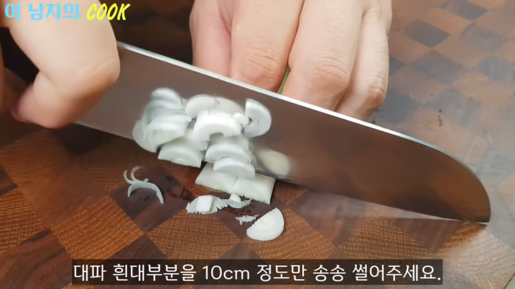 대파 1개를 준비하여 흰대 부분은 10cm 정도로 송송 썰어주세요.