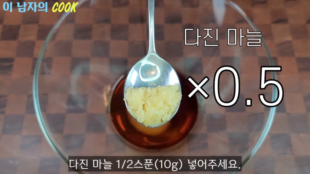 다음으로 설탕과 다진마늘을 각각 반 스푼씩 넣어줍니다. 이렇게 함으로써 맛과 향이 살아납니다.
