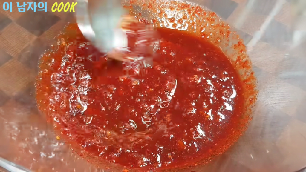 고춧가루 한 스푼을 넣어 칼칼한 맛과 먹음직스러운 색감을 추가합니다.
