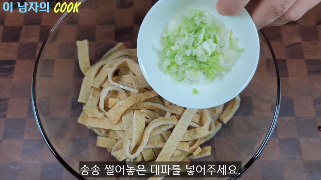 무침에 사용하는 대파는 흰 부분을 주로 사용하면 맛이 좋습니다.