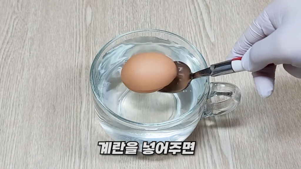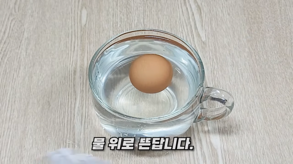 첫 번째, 계란이 오래되어 신선함을 판단하기 어려울 때는 소금물에 계란을 넣어주세요.