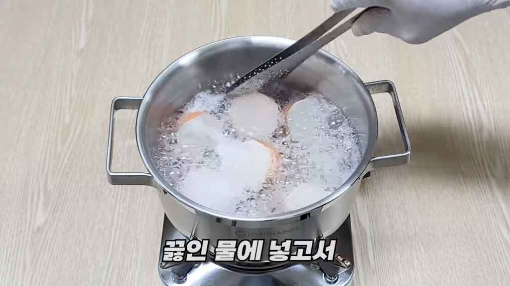 다섯 번째, 계란 껍질을 끓는 물에 넣어 삶은 후 말린 계란 껍질을 김치통에 넣어주세요.