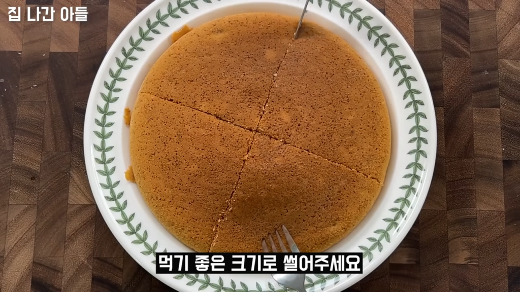 케이크는 젓가락으로 찔러서 속이 익었는지 확인합니다. 아직 익지 않았다면 한 번더 20분 조리를 계속합니다.