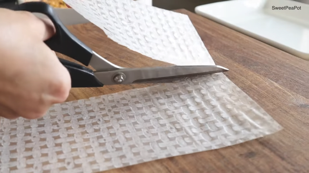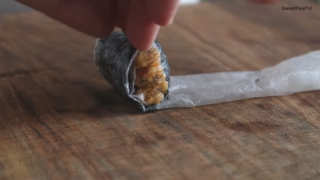 라이스 페이퍼는 반으로 자르고, 김은 반으로 자른 후 오등분 해주세요.