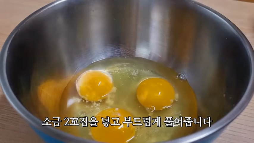달걀 2~3개에 소금 2꼬집을 넣고 부드럽게 풀어 깻잎에 달걀물을 입혀줍니다.