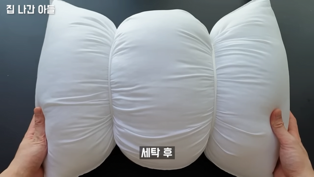 세탁이 끝나면 베개솜을 꺼내고 전과 후를 비교해 보면 확연한 차이를 볼 수 있습니다.