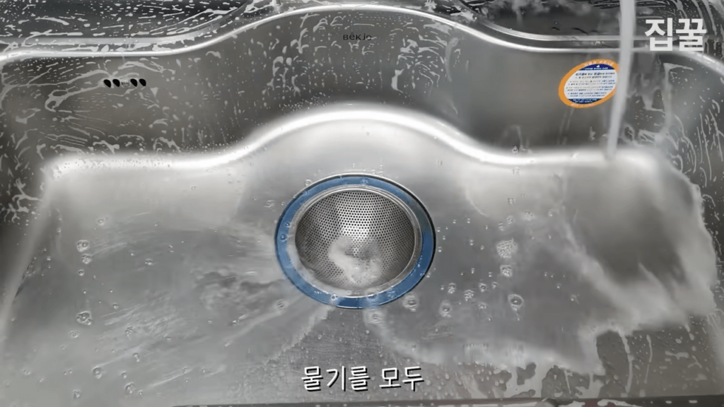 싱크대에 물때가 낀 경우, 끓인 뜨거운 물을 부어주세요.