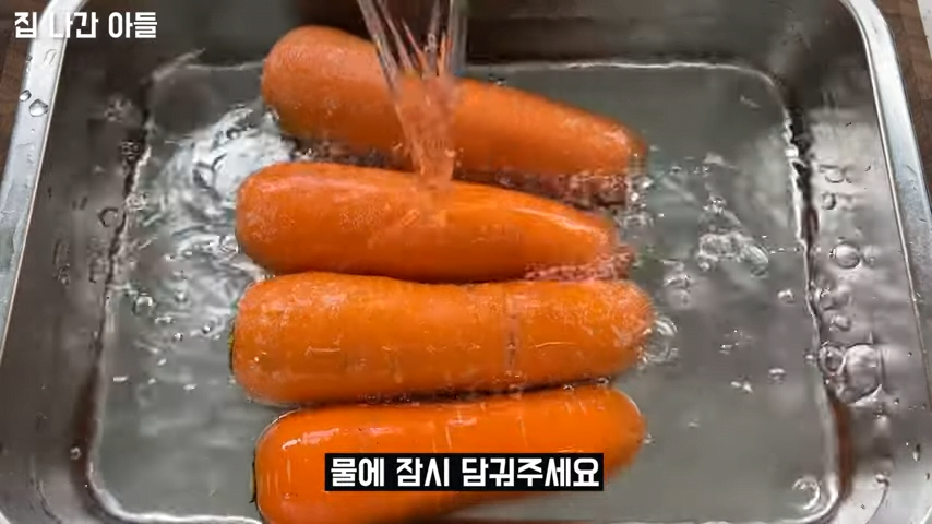 깨끗하게 씻은 당근은 약 5분간 물에 담가 놓은 후 헹궈주세요.