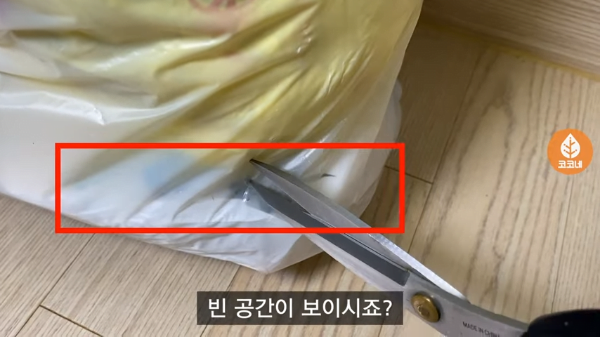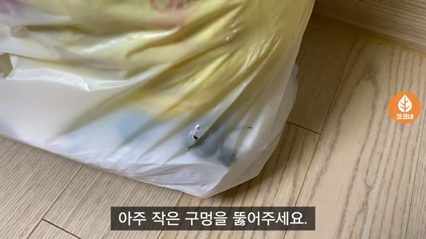 종량제 봉투를 가위로 약간 잘라내면 용량을 2배로 활용할 수 있습니다.