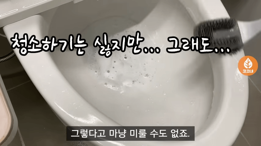 그러나, 변기 청소는 미룰 수 없는 일이죠. 변기를 청소하고 나면 깨끗해집니다.