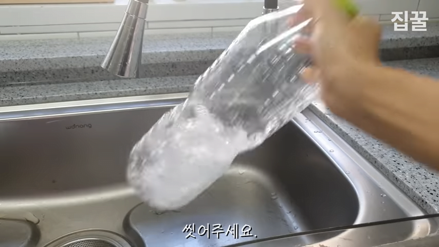 페트병은 깨끗이 씻어 사용하고, 페트병 바닥까지 깨끗이 씻기 위해선 소금을 넣어 씻으면 좋습니다.