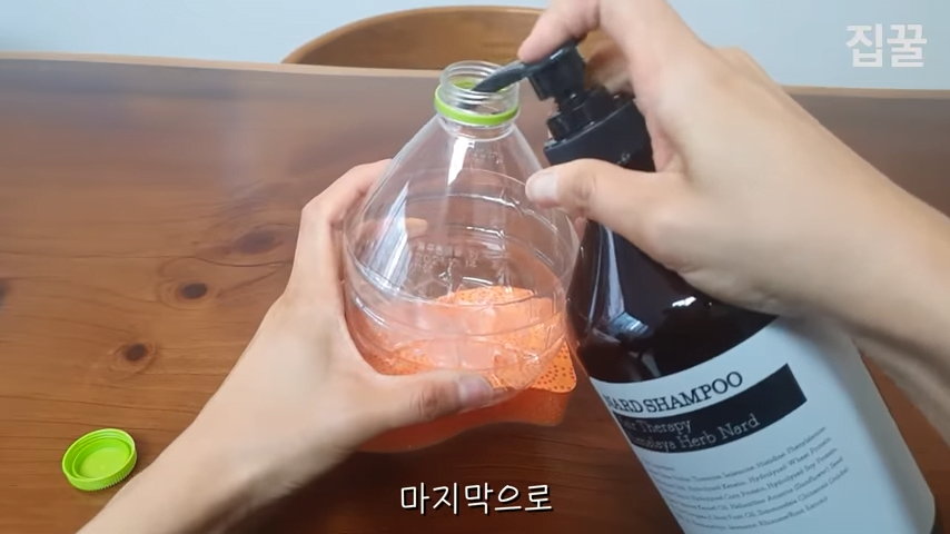 마지막으로 유통기한이 지난 샴푸를 넣고 뚜껑을 닫으면 완성됩니다.