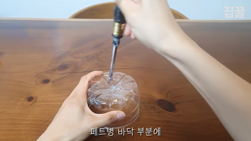 페트병 바닥에는 구멍을 5개 정도 뚫어줍니다.