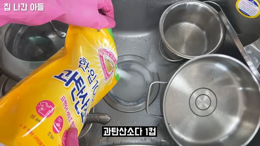 스테인리스 제품이 더러워졌다면, 과탄산소다를 활용할 차례입니다.