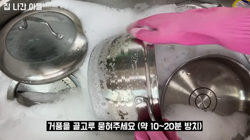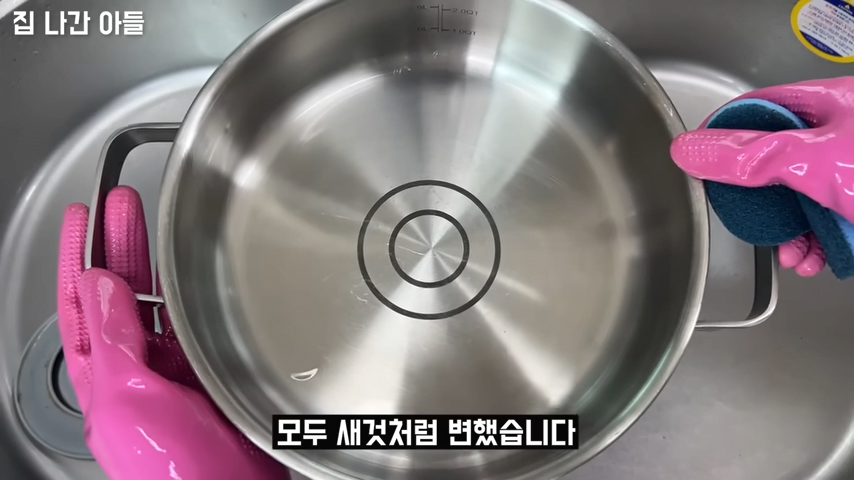 과탄산소다와 뜨거운 물의 반응으로 스테인리스 제품을 깨끗하게 만드는 이 방법은 집에 있는 모든 스테인리스 제품에 효과적입니다.