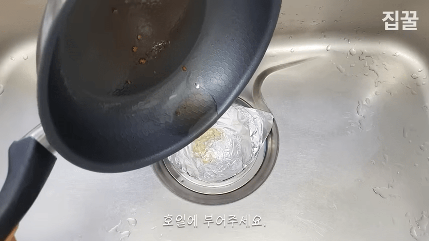 단, 배수구 안에 넣는 호일의 크기는 배수구 구멍보다 커서 구멍에 빠지지 않도록 주의해야 해요.