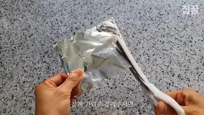 호일을 여러 번 접어 두껍게 만들고, 가위로 자르면 처음보다 더 날카로워진 가위를 사용하실 수 있어요.