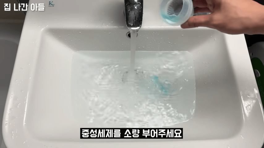 세제가 완성됐다면 니트를 넣고 살살 적셔주세요.