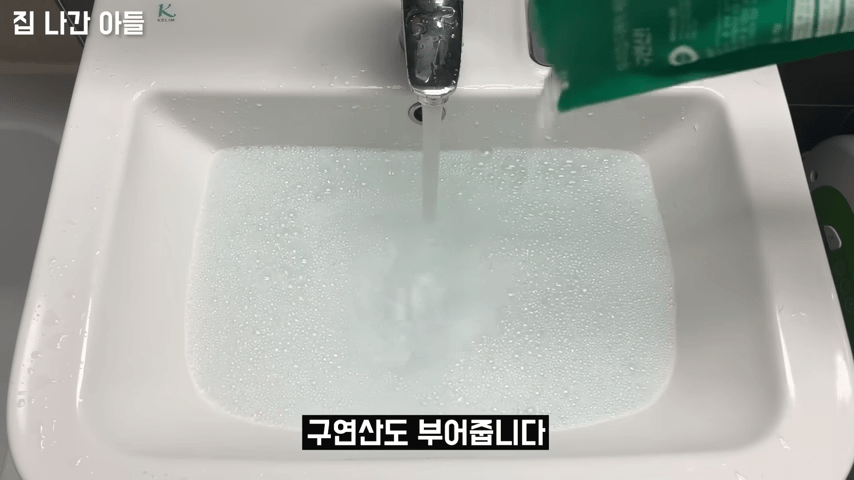 준비한 중성세제를 소량 부어주시고, 균을 도움을 줄 구연산도 뿌려줍니다.