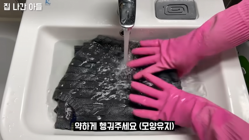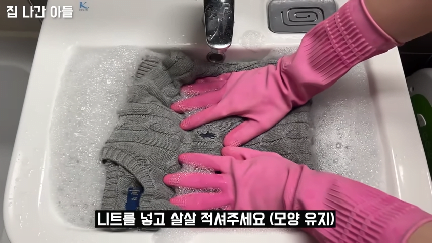 이때 강하게 문지르게 되면 니트가 늘어날 수 있기 때문에 살살 문질러주세요.