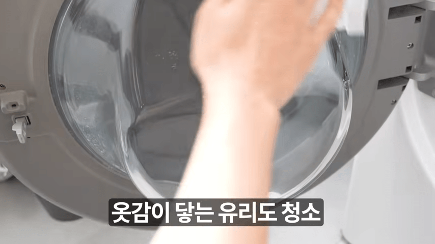 세탁기 유리 부분도 마찬가지로 물티슈로 깨끗이 닦아주면 좋습니다.