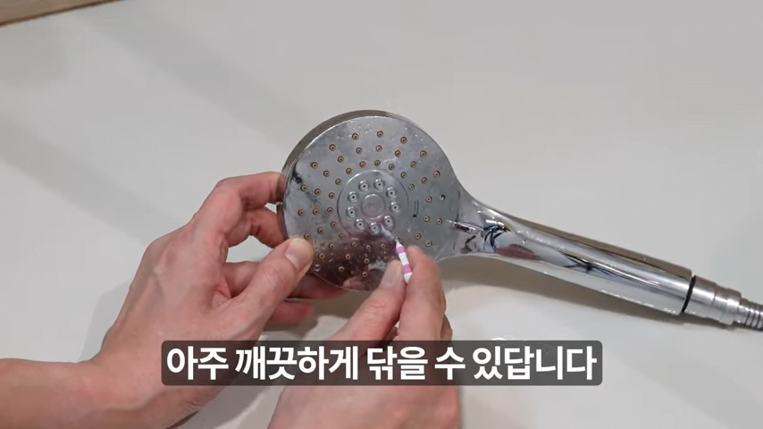 특히, 다쓴 치간 칫솔을 이용하면 샤워기 헤드의 어려운 부분까지 깨끗하게 닦을 수 있습니다.