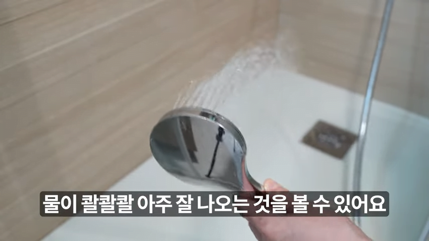 이후 샤워기를 틀어보면 물이 잘 나오는 것을 확인할 수 있습니다.
