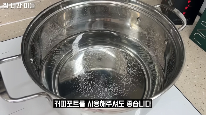 적당한 냄비에 물을 끓이고, 과탄산 소다를 준비해주세요.